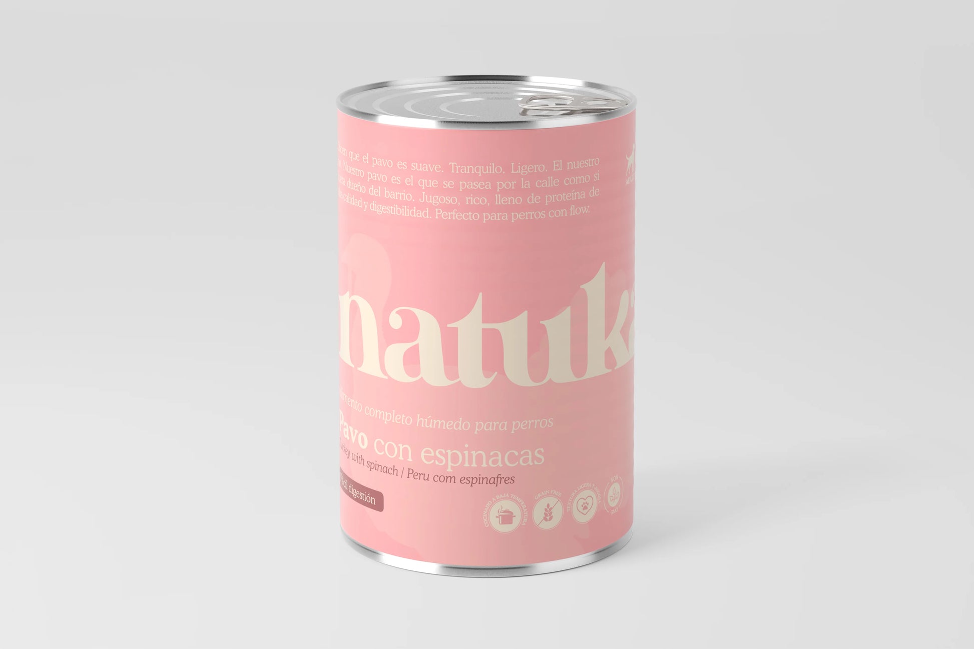 Alimento húmedo completo para perros elaborado con pavo como única proteína animal y acompañado de ingredientes naturales de calidad, como boniato y espinaca. La receta es hipoalergénica, monoproteica y de textura suave — perfecta para digestiones delicadas. Su textura ligera y jugosa convierte cada comida en un momento que tu peludo saboreará desde el primer lamido.